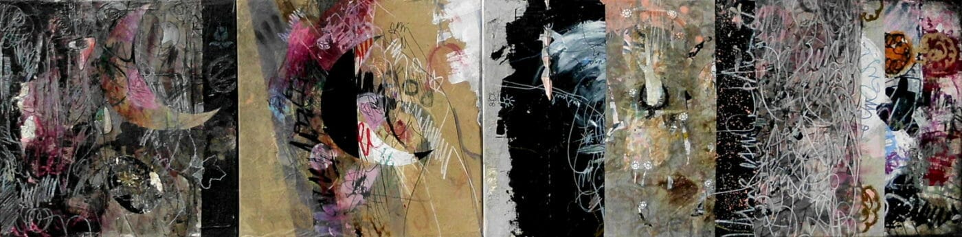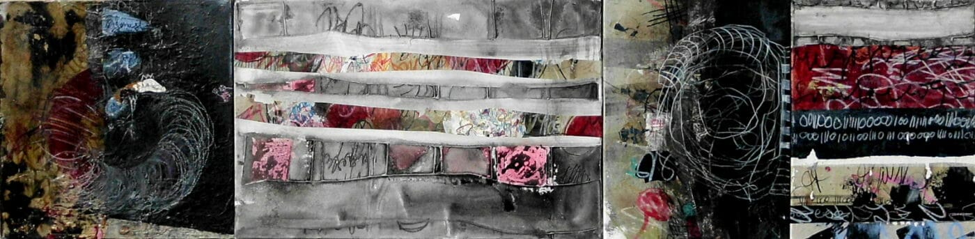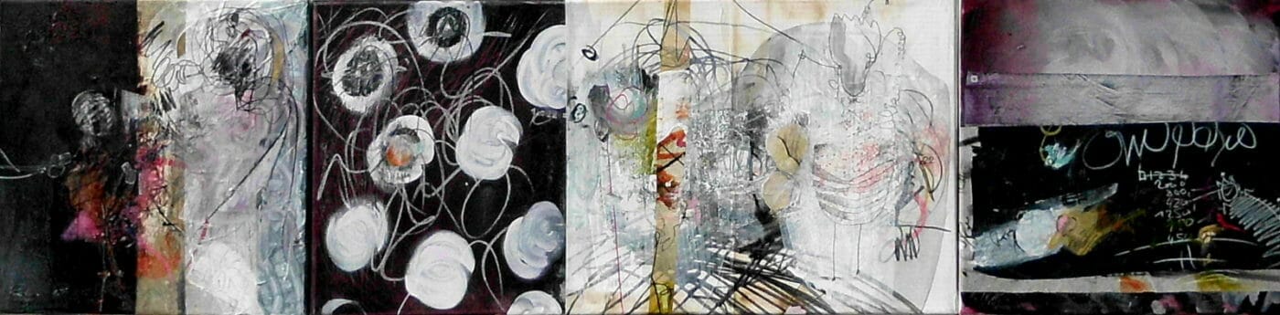 Bildnerische Aneinanderreihung, die in ihrer Abfolge von links nach rechts „gelesen“, einen geschichthaften Abdruck im Empfinden des Betrachters hinterlässt.