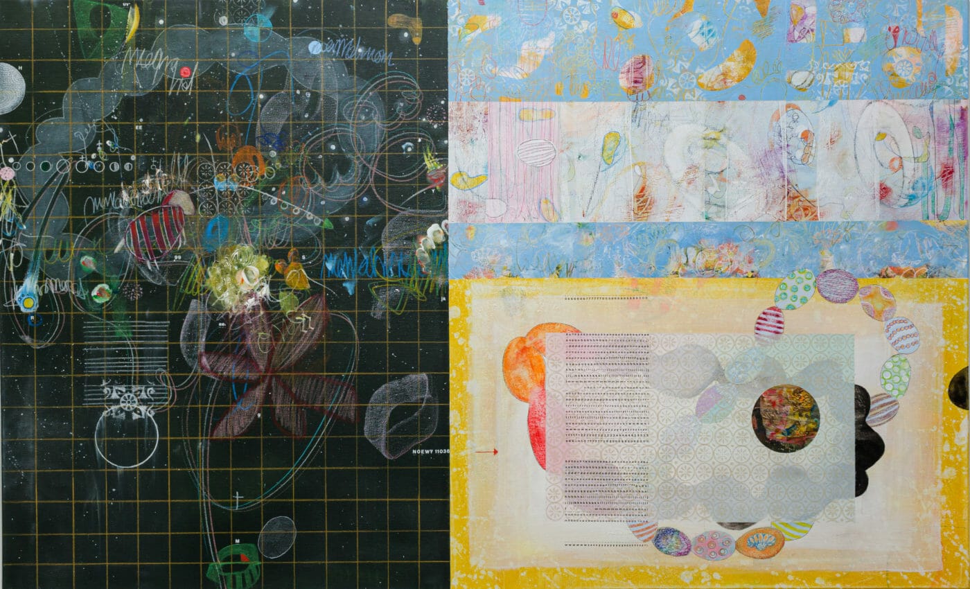 Alle Arbeiten Acryl, Pigment, Kreide, Bleistift, Buntstift / Papier auf Leinwand